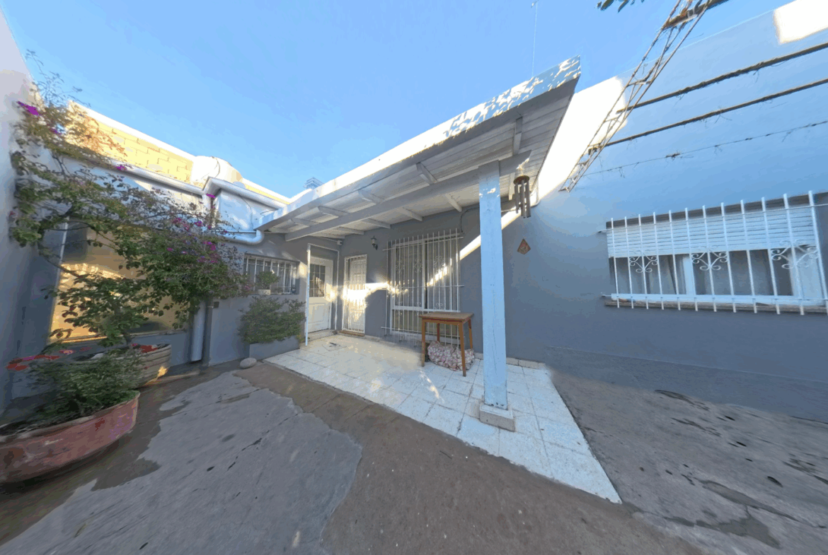 3 dormitorios, amplio patio delantero con entrada de vehículo, patio interno, 1 baño, cocina, living-comedor, despensa y baño.